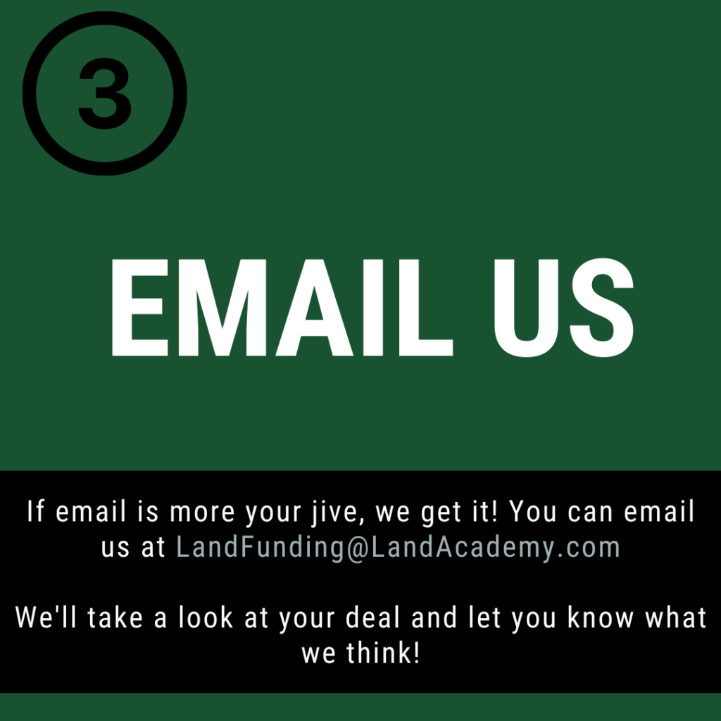 Land Academy is pleased to partner/fund your land transaction(s). If approved, we fund up to 100% of the acquisition cost and have various level of proceed allocation, based on submitter contribution and proportion of workload. Traditionally you are the marketer and we are the bank, but we understand some deals need more of our resources.